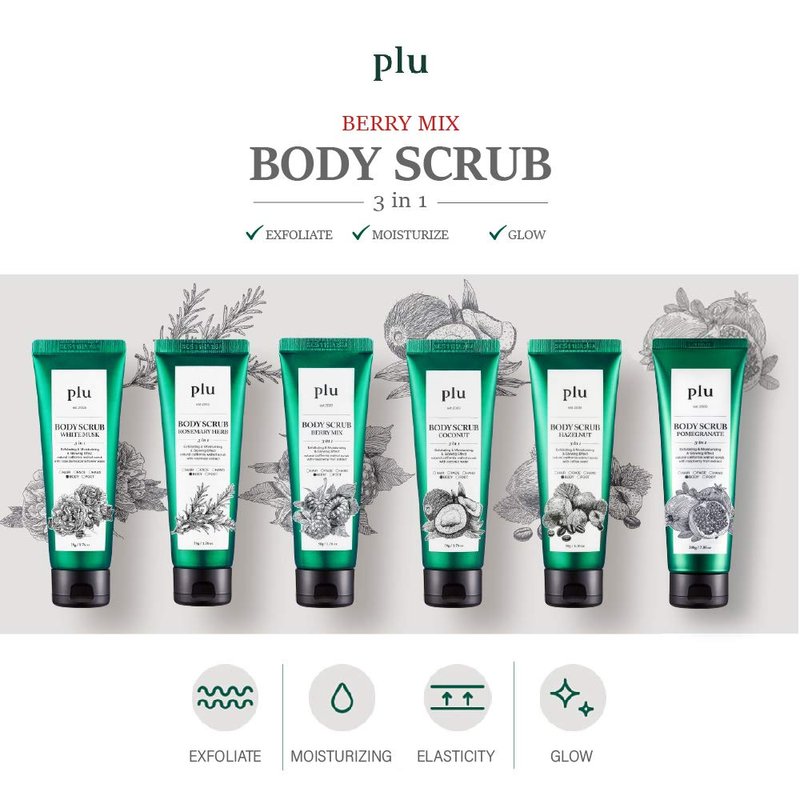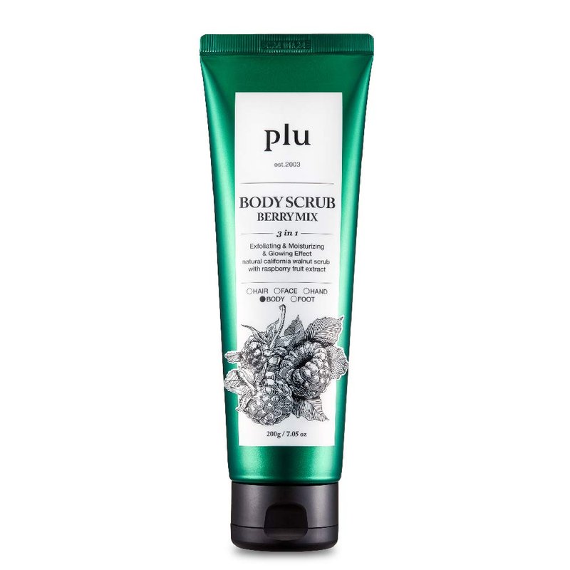 plu Walnut Body Scrub, 3-in-1 Total Care Solution, Exfoliate Moisturize and Glow, 2019 USA Version [Berry Mix/200g]