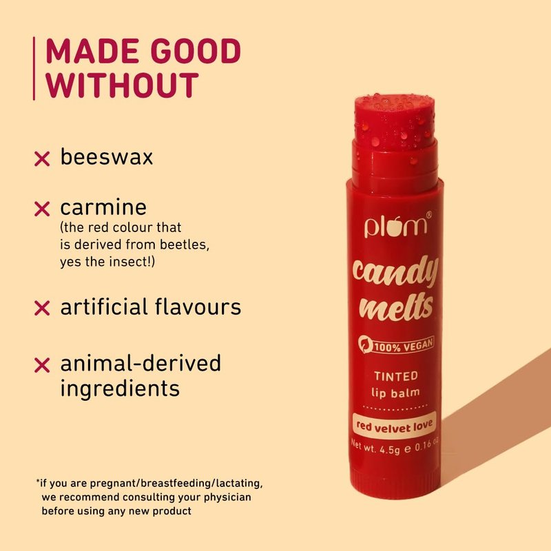 Plum Candy Melts Red Velvet Love Tinted Lip Balm | Moisturizes & Nourishes | Hydrates Dry & Chapped Lips | 100% Vegan | 4.5G (4.5 G (Pack Of 1) Red)
