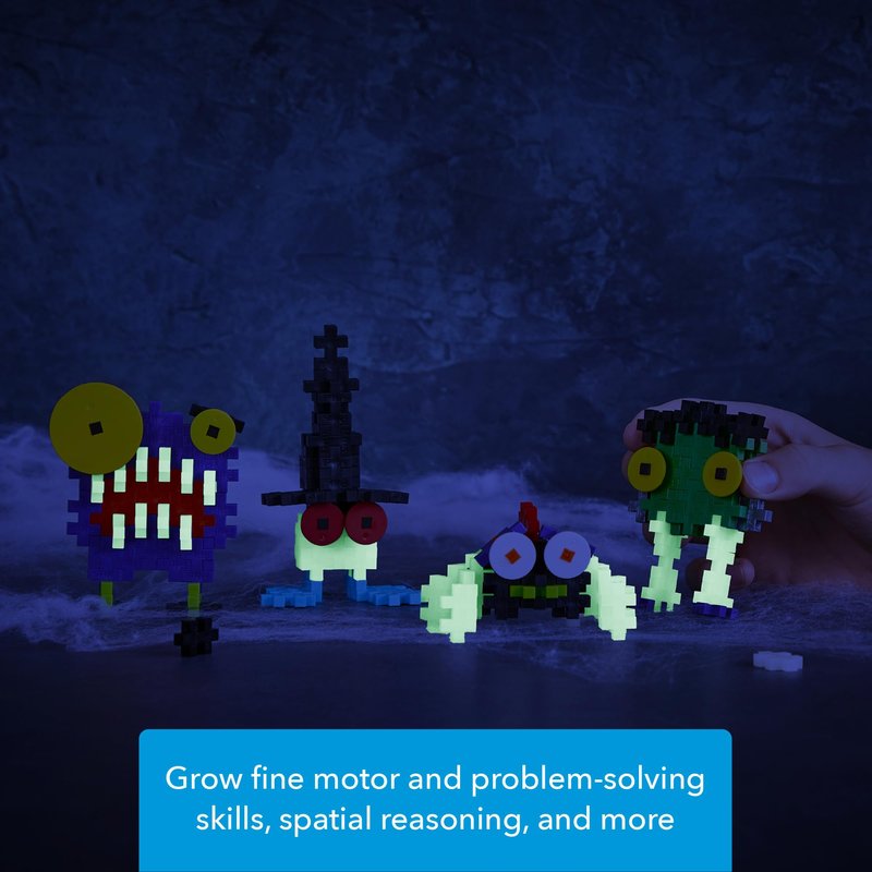 PLUS PLUS Creepy Critter Fun Pack, Halloween 3D Puzzle Building Block Set, 160 Mini Interlocking Pieces, Fun Holiday Activities for Kids - Glow in The Dark