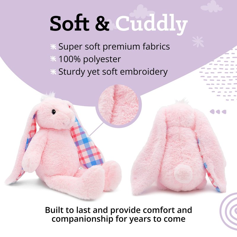 - BUNNY PLUSH: Nothing is more comforting than snuggling up to this fluffy, plush bunny. Kids will love taking their new Easter bunny plush animal on any adventure, featuring a unique, plaid inner ear, expertly embroidered eyes, mouth, and oh-so-huggable softness