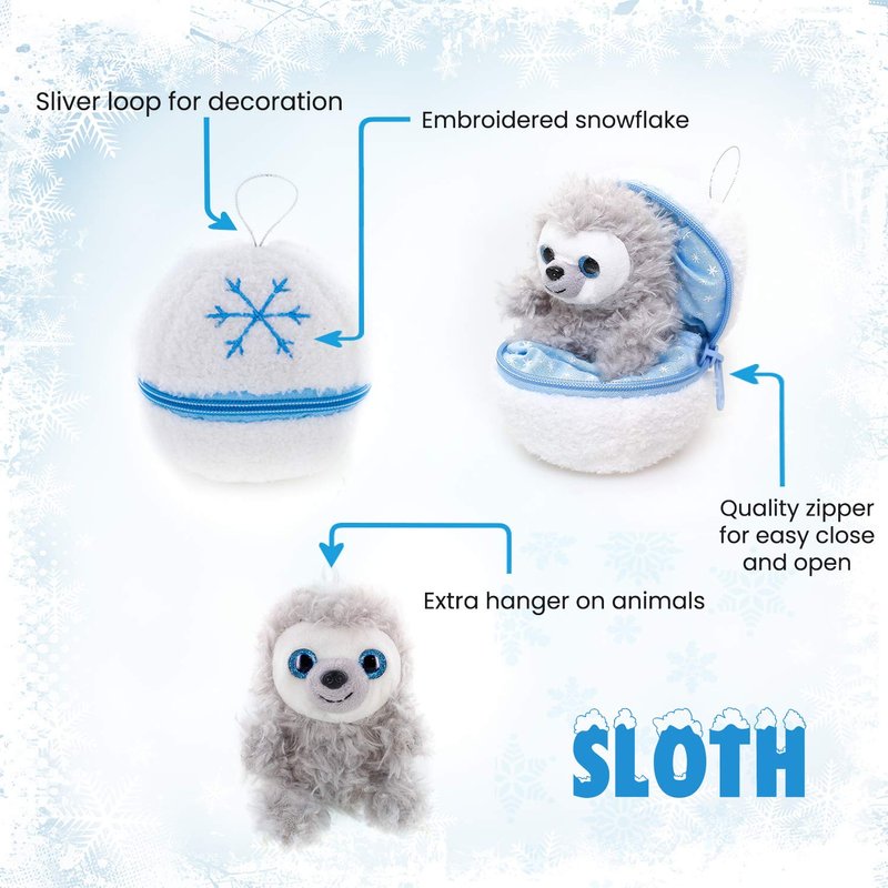 Plushland Snowball Stuffed Zip up Animal – Sloth – Cute Plush Animals Assortment – Wonderful Soft Toy for Families and Friends