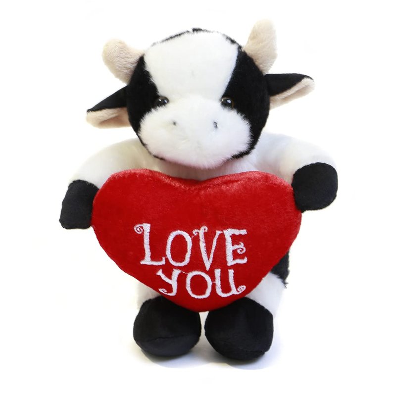 Plushland Stuffed Animal with Red Heart – Love You- Plush Animals Toy for Kids & Adults - Embroidered Heart Pillow -8 inches (Cow)