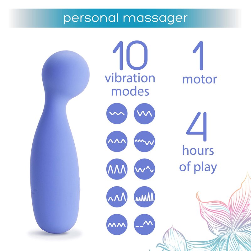 plusOne Personal Massager for Muscle Relaxation 10 Vibration Settings Waterproof Body Safe Silicone Ultra Hygienic Quick Charging USB Cable, Premium Periwinkle, 1 Count