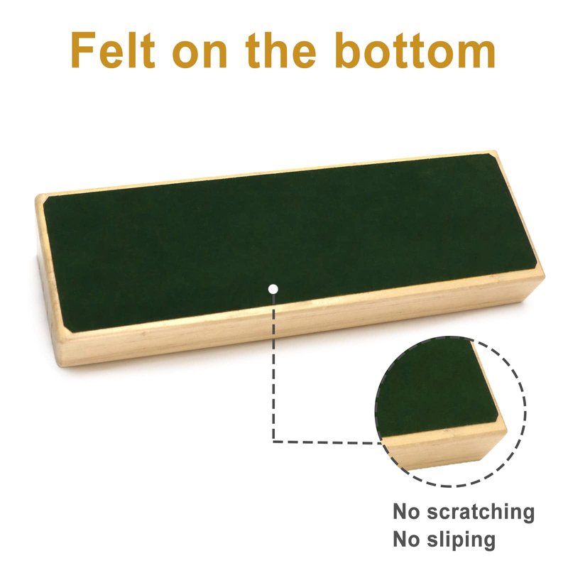 Glossy finished wood➤The edges of the block have been totally sanded, so it has a very nice touch. And the narrow interior of the canasta card holder with no debris to damage the cards.