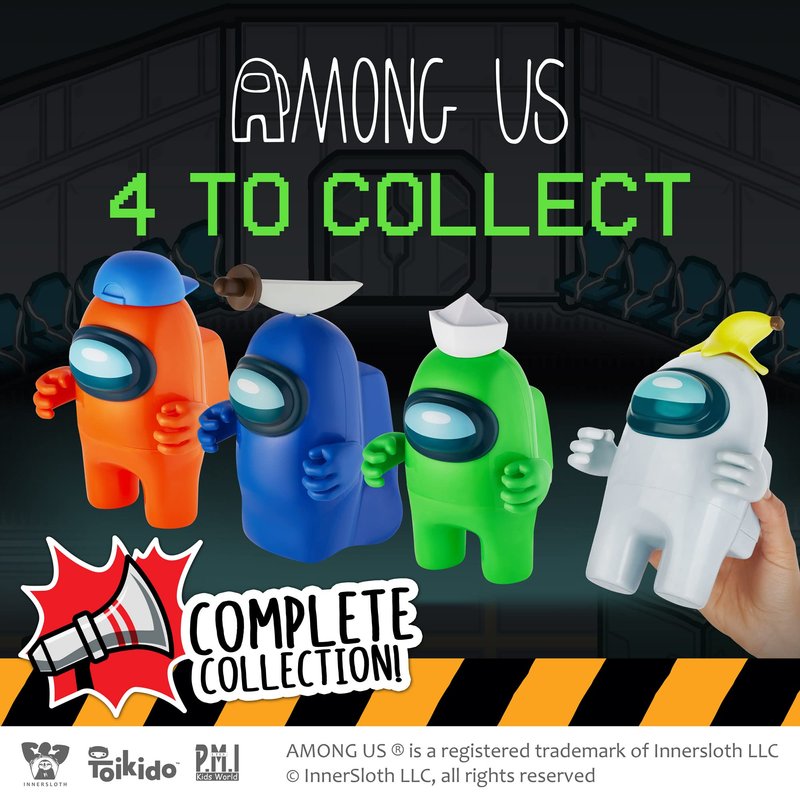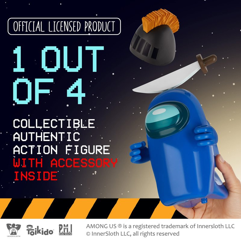 - GENUINE AMONG US MERCH LICENSED BY THE GAME’S DEVELOPERS. P.M.I., the manufacturer of these kids’ toys, is licensed by InnerSloth, the company that created AmongUs. These mini toys are authentic-looking and in line with the game’s original style. Minimalistic as they are, these action figures show the producer’s great attention to detail, like the 3 accessories included in the box. Spark your children’s interest in the game, or reward them if they’re already fans.