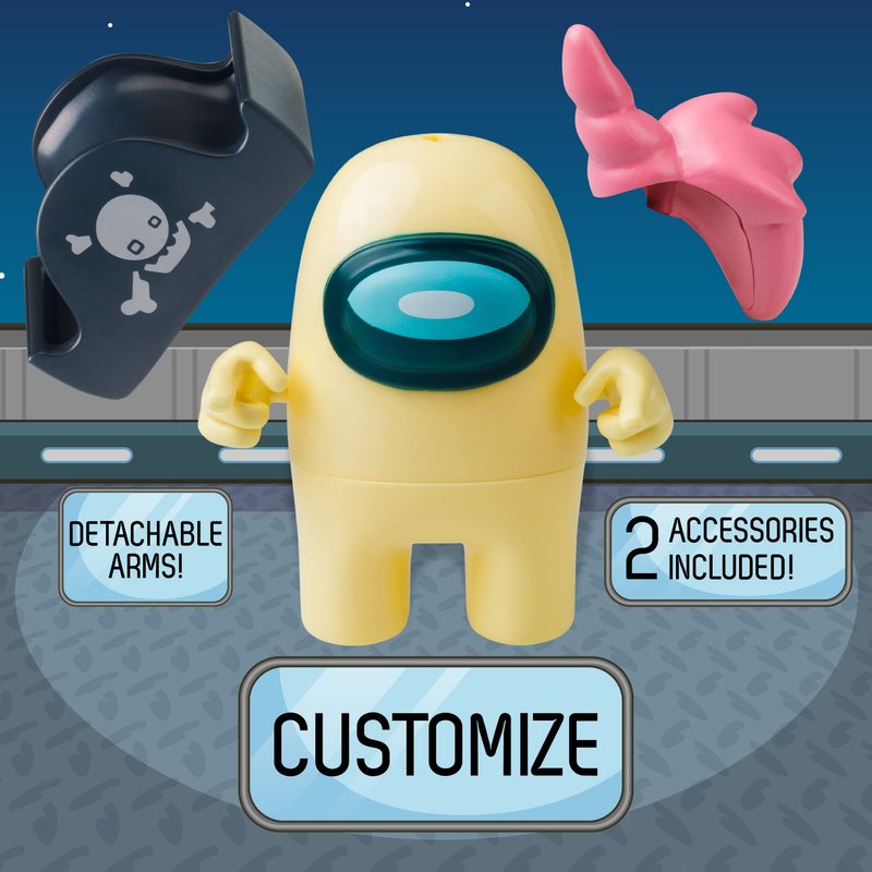 - SERIES 3 COLLECTIBLE ACTION FIGURES: A brand new series of Among Us toys and collectibles for kids. 1 pack Yellow Crewmate Action Figure with 1 set of detachable hands and 2 Different Among Us Hats.