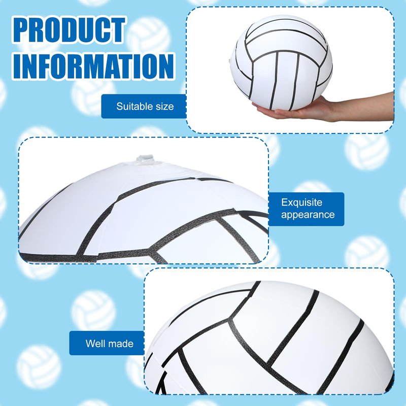 Features: If you are looking for an ideal and enjoyable gift, these swimming pool volleyballs suit well. They can work as fun gifts for teenagers, students, classmates and family members, thereby bringing more excitement and cheer to your summer beach parties. While our volleyball balls assure both fun and fitness, we urge being careful during the inflation process and keep them away from sharp objects to prevent potential punctures. Keeping them away from fire or heat sources ensures the balls' longevity and your safe enjoyment. Your safety is paramount to us, even during fun times. Specifications: Material: PVC Color: white, black Size: 8 inches/ 21 cm Package includes: 12 x Inflatable pool volleyball 1 x Bump Notes: Manual measurement, please allow slight errors on size. The color may exist a slight difference due to different screen displays. Please keep the balls away from pointed objects, heat or fire resources. And do not over inflate the balloon to avoid bursting.