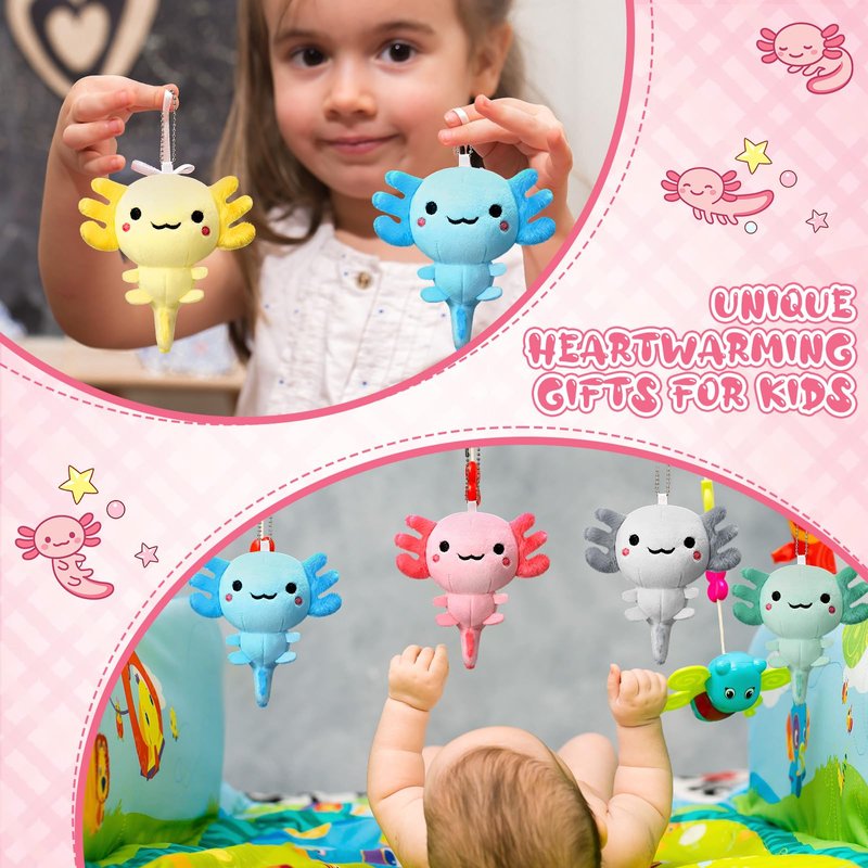 - Delightful Axolotl Party Favors Bulk: dive into a world of vibrant colors with our axolotl plush toy collection; This package boasts 8 distinct axolotl stuffed animals, each about 4 inches in size; With such a rich array of hues, this cute axolotl stuffed plush toys are sure to captivate boys, girls and adults, making sharing with loved ones an absolute joy