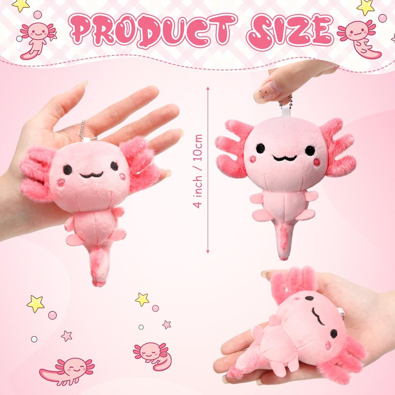 - Versatile Decorative Charm: each of our axolotl keychain plush toys comes with a detachable beaded chain, transforming them into plush keychains for backpacks, handbags, and more; Whether you're sprucing up your personal space or decking the halls for festive occasions, these fluffy stuffed axolotls are the cute decorative touch