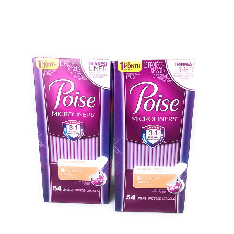 Poise Microliners, incontinence panty liners, lightest absorbency, regular, 54 Count, PACK OF 2