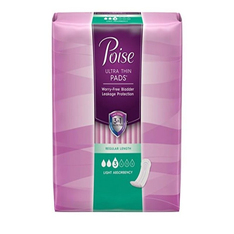 Poise Ultra Thin Incontinence Pads, Light Absorbency, Regular, 30 Count (Pack of 3)