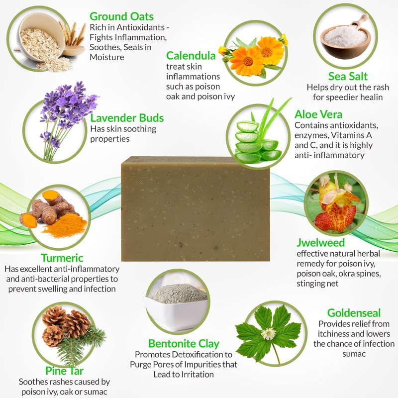 - SOOTHES AWAY ITCHING & IRRITATION: This soap for poison ivy and poison oak is formulated with pine tar, jewelweed, calendula, lavender, and other natural ingredients to relieve swelling and pain and promote faster relief instantly.
