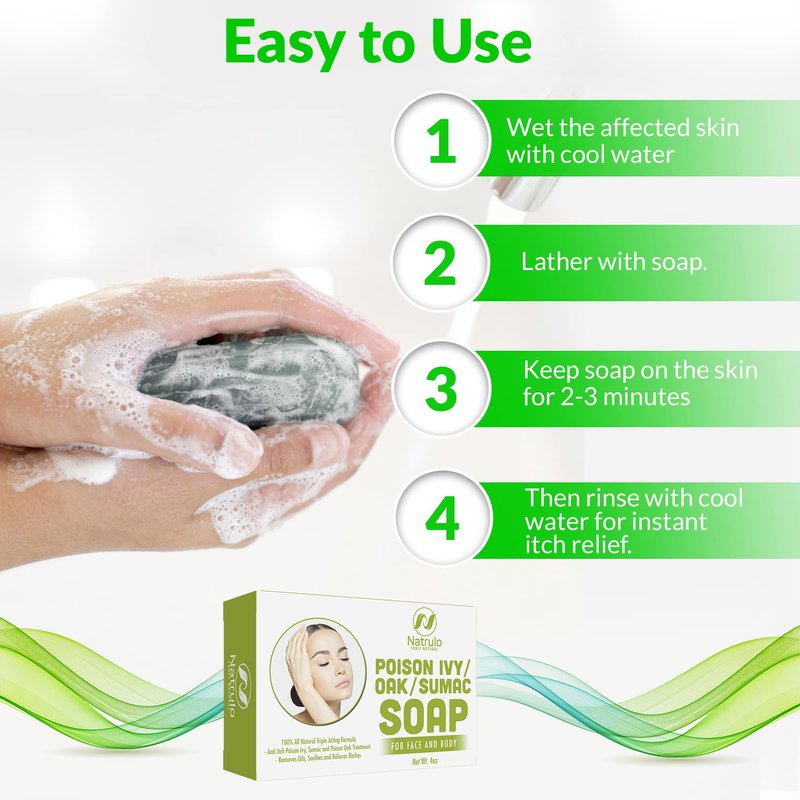 - PROVIDES INSTANT ITCH RELIEF: Natrulo's poison ivy relief soap features a unique triple-action formula that immediately stops the itching and prevents further rashes and irritation caused by poison ivy, poison oak, and sumac.