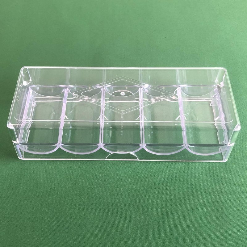 - This poker chip holder with lid is made from thick and durable clear acrylic with smooth surface, no sharp adges.Transparent and stackable.
