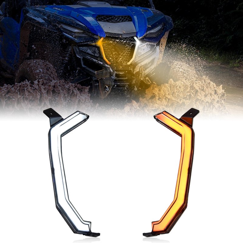 POKIAUTO Turn Signal Fang Lights for Yamaha RMAX 1000, Front Grille Fang Accent Signature Light LED Center Grill Light for Yamaha Wolverine RMAX2 RMAX4 1000 2021 2022 2023 2024 Accessories (2PCS)