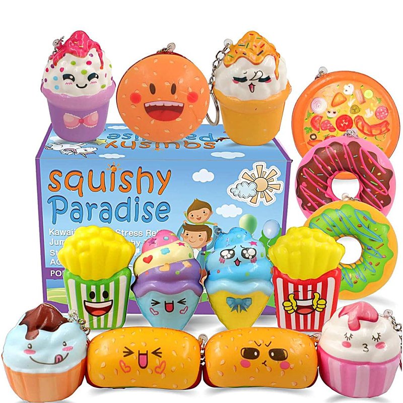 POKONBOY 14 Pcs Food Squishies with Key Chain Kawaii Cute Donuts & Ice Cream & Pizza Slow Rising Creamy Scent Stress Relif Squishy Toys Party Favors Decorative Props Gift Hand Toy for Kids