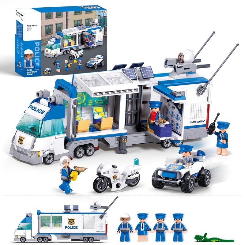 City Police Command Center Truck Building Toy, Police Mobile Car Toy, Motorcycle, Police Cop Patrol, 4 Minifigures Compatible with Lego City Transporter Truck, Ideal Gift 6-12 Boys Girls, 510pcs Product Model Number: M38-B1219