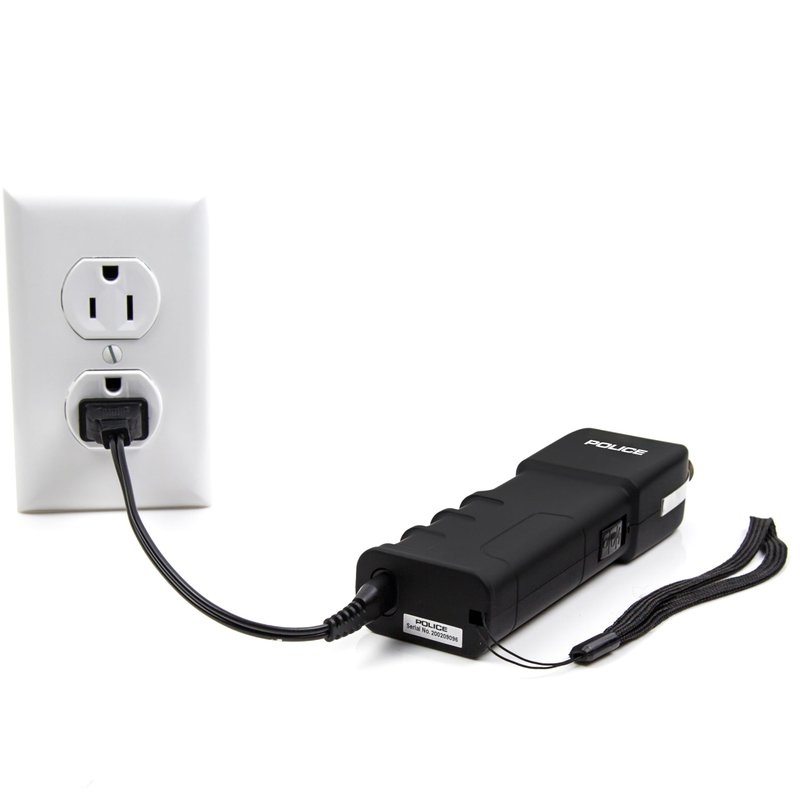 - INTERNAL RECHARGEABLE BATTERY: Stun gun flashlight simply plugs into a standard wall outlet for a complete recharge. No Batteries needed! Charging cord included.