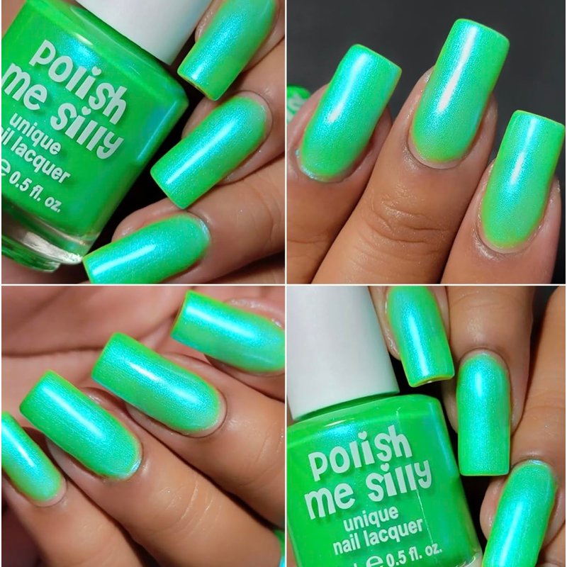 Polish Me Silly Slimey Glow - Neon Green Blue NEON Glow Pop Collection Multi Color Shifting: Mylar Oil Slick Indie Nail Polish