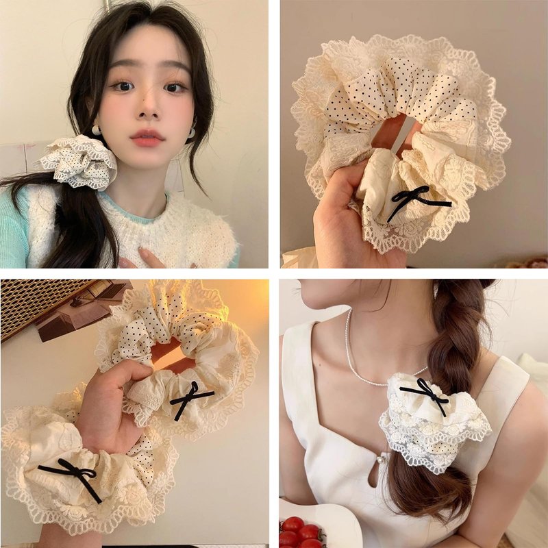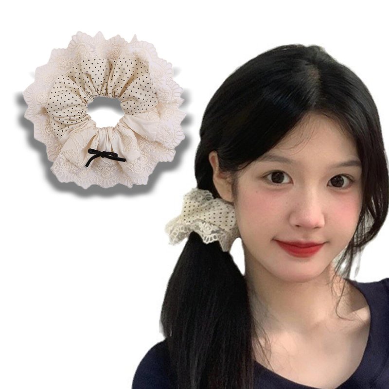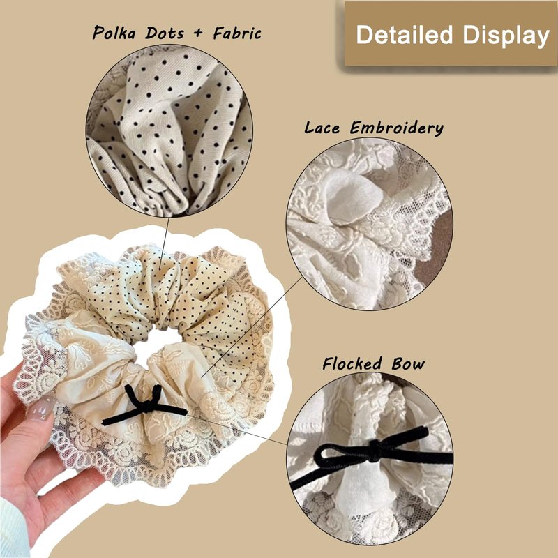 Polka Dots Scrunchies Hair Ties for Girls Women Lace Elegant Hair Ties Soft and Elastic Ponytail Holder Creamy White Cute Scrunchy Hair Accessories for Women Teens