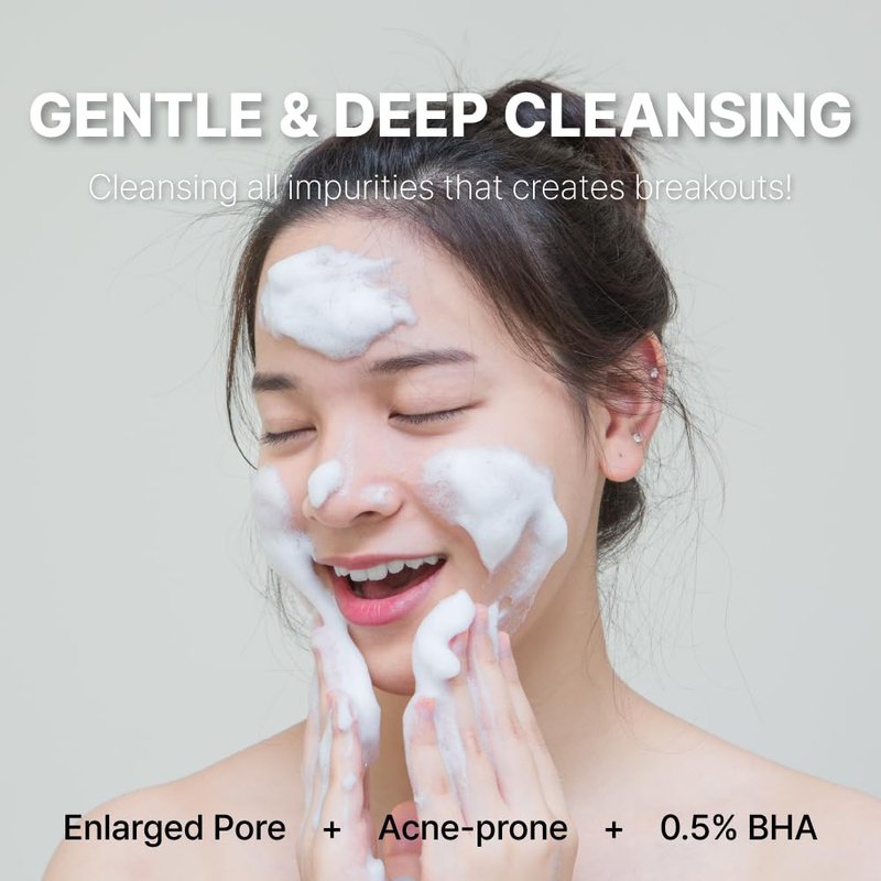 - [0.5% BHA FOAMING CLEANSER] Formulated with 0.5% BHA, it clears out sebum, removes make-up residue, and helps soothe and calm the skin.