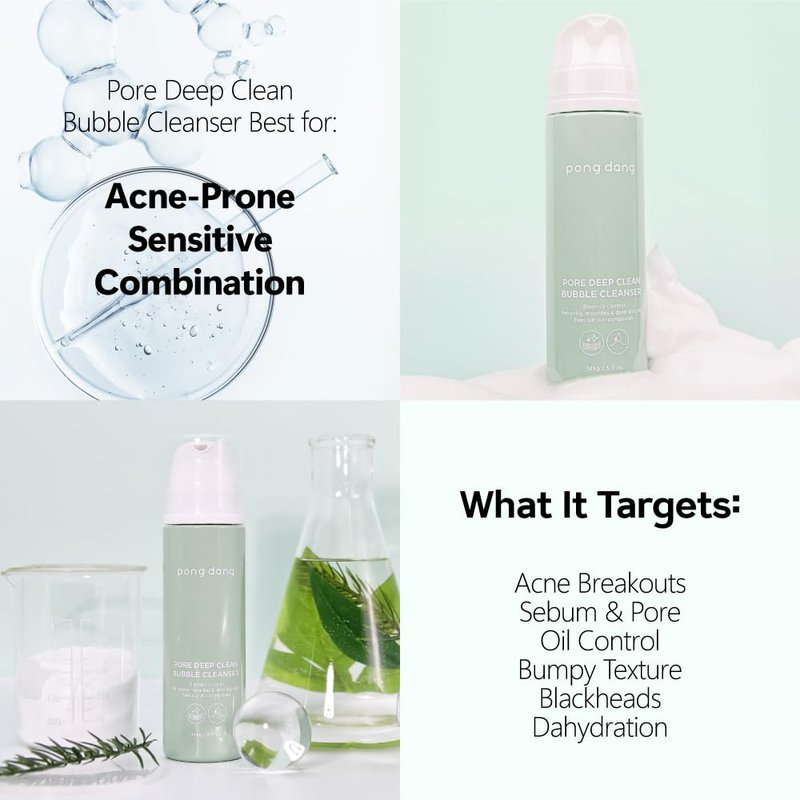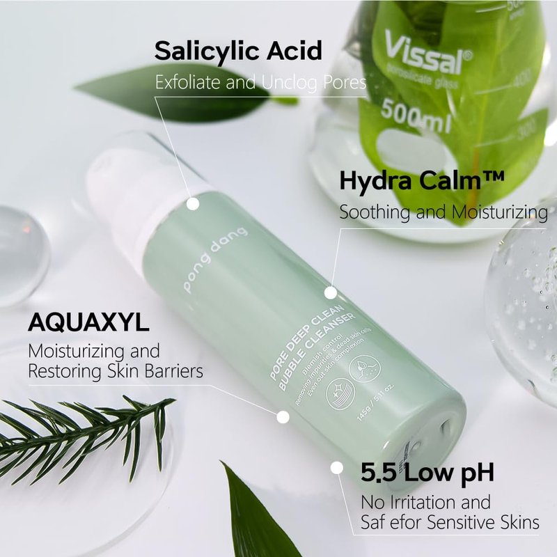 [BEST CLEANSING FOAM FOR Problematic Skin] This Pore Deep Clean Bubble Cleanser is dermatologically tested and has a skin irritation index of 0.00. It helps soothe acne and irritations from your damaged skin - FREE of 20 Harmful Ingredients. [THE TOP SEARCHED "BLEMISH-PRONE CLEANSER" IN KOREA] This foam cleanser is the #1 top-searched "blemish-prone cleanser" in South Korea, and most users repurchased! [0.5% BHA FOAMING CLEANSER] Formulated with 0.5% BHA, it clears out sebum, removes make-up residue, and relieves & soothes irritation. [CONCENTRATED, EFFECTIVE INGREDIENTS] Infused with Salicylic Acid, Hydra Calm, and Aquaxyl, those ingredients are effective for soothing blemishes and acne, exfoliating and unclogging pores, and moisturizing even sensitive skin types. [DERMATOLOGY COSMETIC BRAND] At PONGDANG, we are committed to making dermatological skin care products that offer VISIBLE RESULTS with no irritations, even safe for sensitive skin.