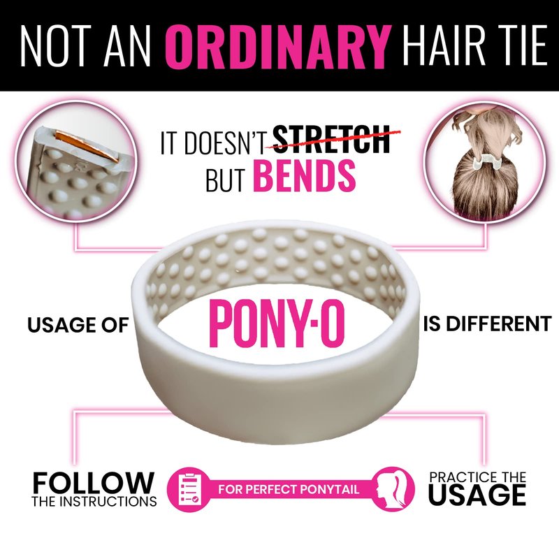 - PONY-O LOVES YOUR HAIR – Coated with soft silicone, PONY-O holds stronger than 8 conventional hair ties and quickly adds volume to your ponytail without damaging, snagging, or creasing your hair. Great for red carpet ponytails, graduation parties, weddings, proms, yoga practices, dance parties, and more. Choose your favorite color from the wide range of colors available.