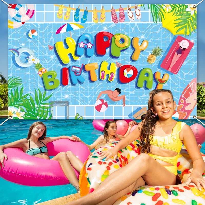 - Fit lots of occasions: This summer swimming birthday pool backdrops not only can be used as summer swimming party decorations, but also can be used for photo studio photo background, studio decoration,home decoration, birthday party banner, and so on.