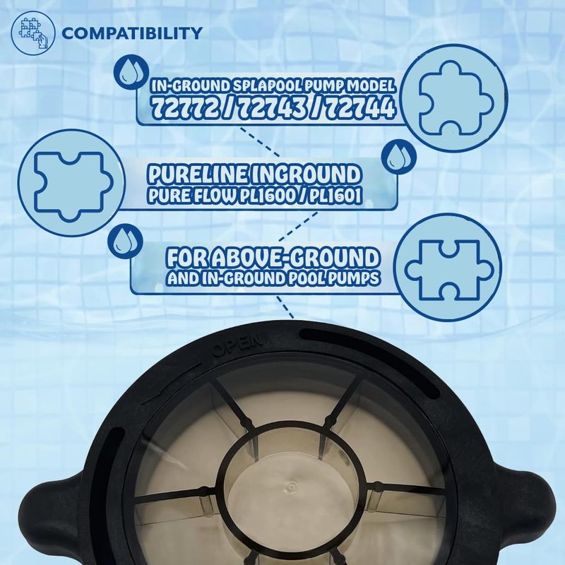 Poolzilla Replacement Pool Pump Basket Cover, Compatible with Splapool Above-Ground and In-Ground Pool Pumps, Comes with O-Ring