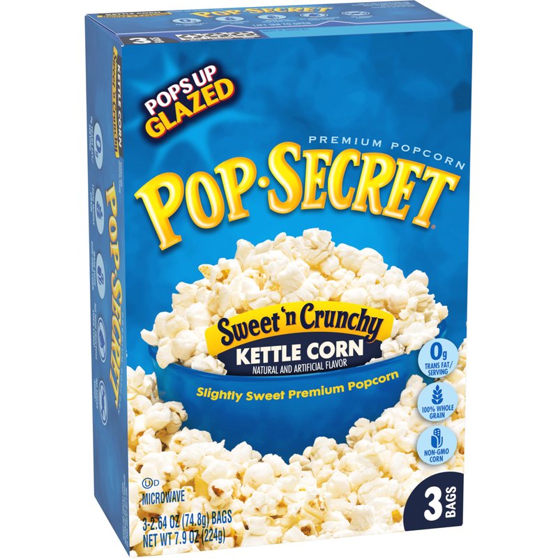- Slightly sweet Pop Secret Kettle Corn Popcorn- pops up glazed for extra crunch and flavor!