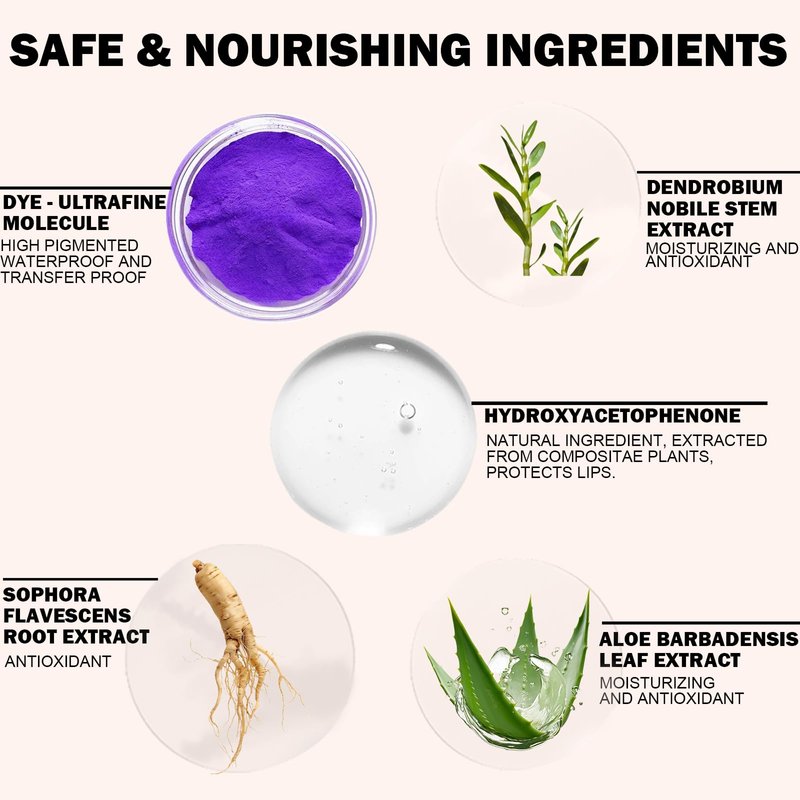 - PROVIDE NUTRITION AND PROTECTION: Infused with skin-loving ingredients Vitamin E, Algin, our lip stains for women peel off lip liners keep your lips ultra-hydrated and mostitured. With Hydroxyacetophenone, Dendrobium Nobile Stem Extract, Aloe Barbadensis Leaf Extract And Sophora Flavescens Root Extract which extracted from plants our peel lip stain will nourish and protect your lips.