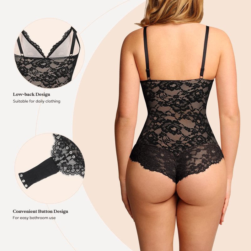 - ADJUSTABLE STRAPS & CONVENIENT CLOSURE DESIGN: Our bodysuit is designed with classical deep V neck style, which can be well-groomed your shape of neck, breasts and face. The corset shapewear has 2 adjustable and removable straps let you customize to fit your body perfectly. The skin-friendly and breathable inner material of tummy control thong panties has 3 snap buttons for easy and flexible closure.