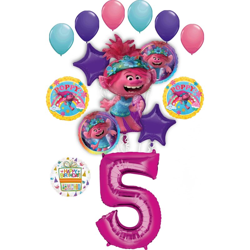 Poppy World Tour 5th Birthday Party Supplies Trolls 15pc Balloon Bouquet Decorations