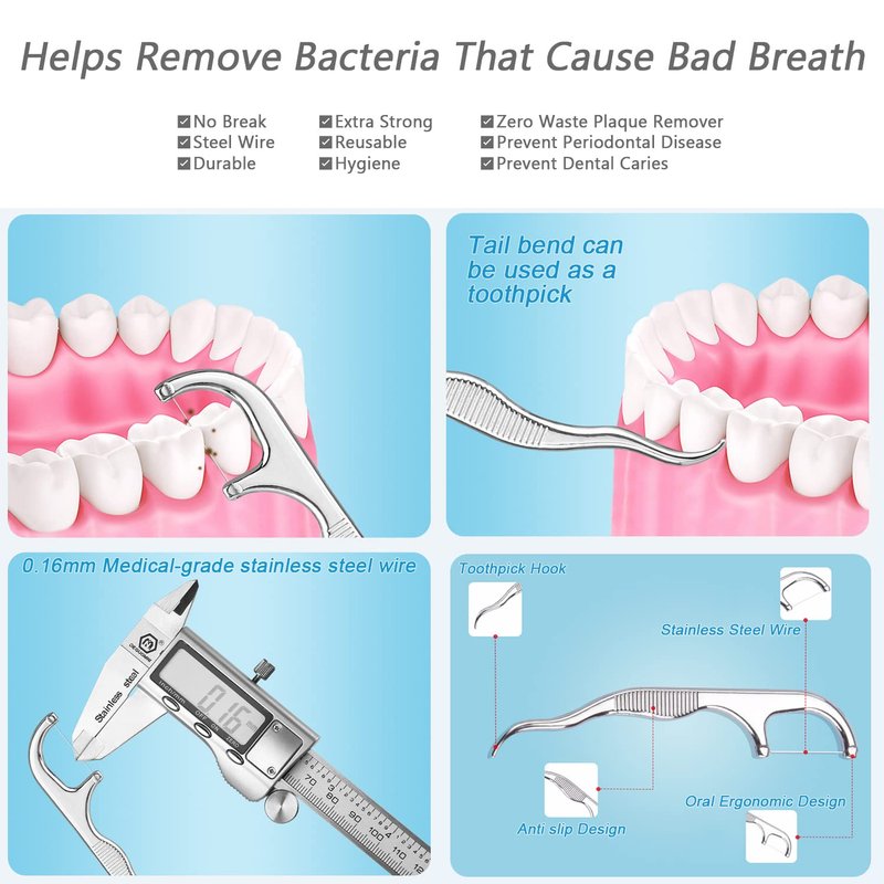 Portable Toothpicks Pocket Set, Dental Floss Picks, Reusable Flosser, Travel Tooth Picker, Flossers for Adults, Stainless Steel Teeth Cleaning Kit
