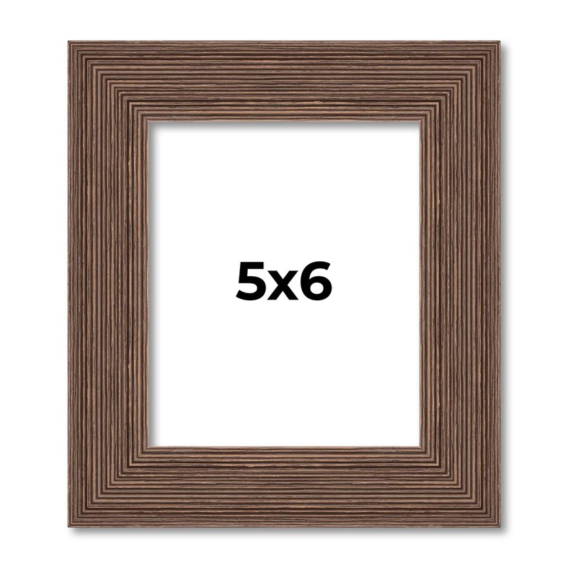 5x6 Distressed/Aged Color Wood Picture Frame - UV Acrylic, Foam Board Backing, & Hanging Hardware Included!. This Wood Picture Frame has been built for images measuring 5x6 Inches.. Overall dimensions 6.5x7.5 Inches.. Moulding Width: 1.5 Inches - Rabbet Depth: 1/2 Inches. UV Resistant Frame Grade Acrylic Sheet & Foam Board Backing Included.. Frame can be displayed vertically or horizontally. Easel Stand Included for Table Top Display.