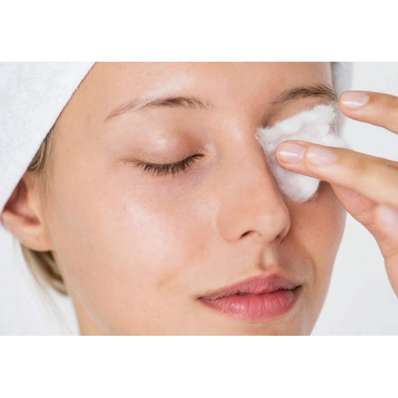 With the cotton pad, dab the product on the face so that the micelles act and then gently move the pad in circular motion from top to bottom all over your skin to clean and remove impurities.