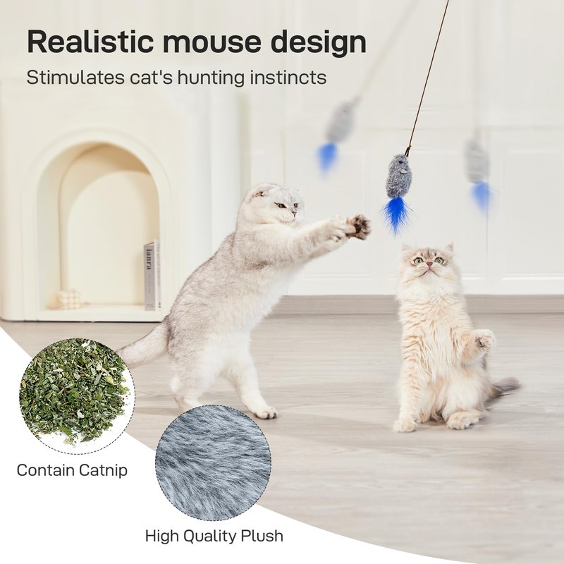 - Realistic Mouse Design: The high-quality plush mice look and feel lifelike, stimulating your cat's natural hunting instincts. Each toy contains catnip to excite and engage your kitty, making playtime more fun and enriching.
