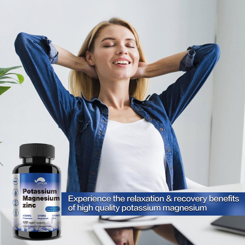 - Potassium Magnesium Supplement For Muscular Contraction-Our products are benefits for maintain water balance and regulate blood pressure, muscle contractions, nerve impulses and digestion.Combined with zinc for maximum benefit