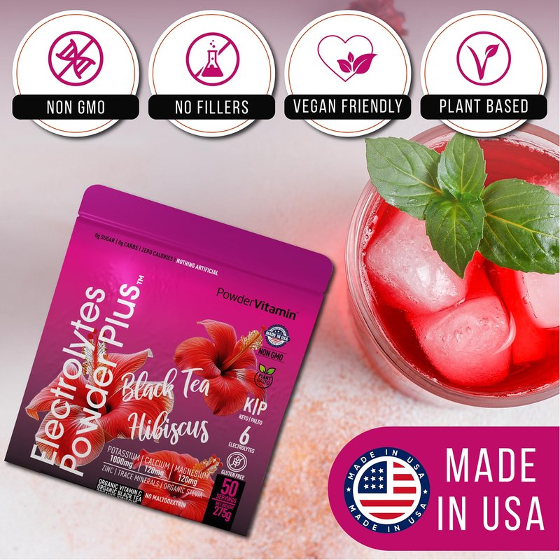 - Easy To Make: By stirring into flat or sparkling water, our sugar-free electrolytes powder serves up 50 20oz of refreshing keto Black Tea Hibiscus per 275g pouch. It is a thirst-quenching recovery drink.