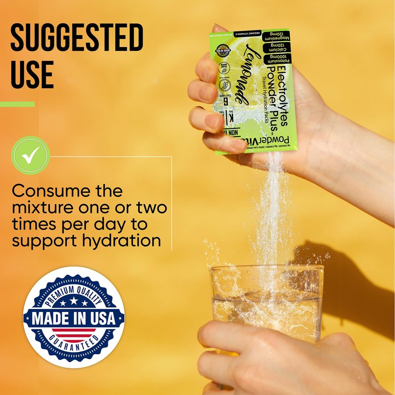 The Key to Keto Success Stay hydrated and ensure proper cell function after a day in the sun or a night in the town. PowderVitamin Electrolytes Powder No-Sugar Drink Mix naturally replaces mineral salts that your body lost while sweating over the lawn mower or partying with friends. This aids in post-workout recovery. Our Variety Pack A-flavor electrolyte drink mix is a tasty and guilt-free way to stay hydrated. No Fillers or Additives Our no-sugar electrolyte powder is free of maltodextrin, a claim that many other electrolyte drinks cannot make. It also contains many key vitamins and minerals, so it does the work of a potassium supplement and magnesium supplement. Stabilize daily energy levels, stay hydrated for peak physical and mental performance with everything you need and nothing that you don't. Each bag contains 85 grams powder packet of PowderVitamin Keto Electrolyte Powder equals to 16 packets. Made in the USA This electrolytes no-sugar hydration powder is manufactured at FDA-compliant, GMP-certified facilities for your peace of mind. It contains 100-percent clean magnesium citrate, potassium citrate, organic beets, and organic Vitamin C + zinc, with no artificial flavors, fillers, or chemicals. This makes it ideal for occasions when you need fasting electrolytes. Simply stir 1 packet into water until dissolved and enjoy. Deliciously re-hydrate without calories or sugar. Add PowderVitamin Electrolytes Keto Powder Plus to your keto drinks today