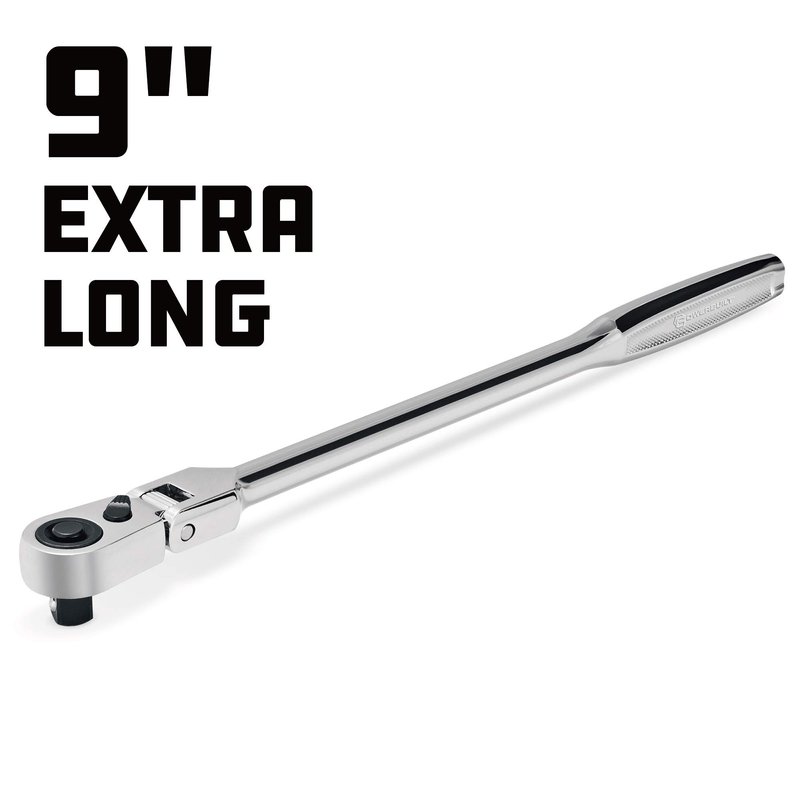 Powerbuilt 1/4 Inch Drive Flex Head Ratchet, 9 Inch Reach, Extra Long Contour Tool Handle, 72 Tooth, Pro Tech Series 649951