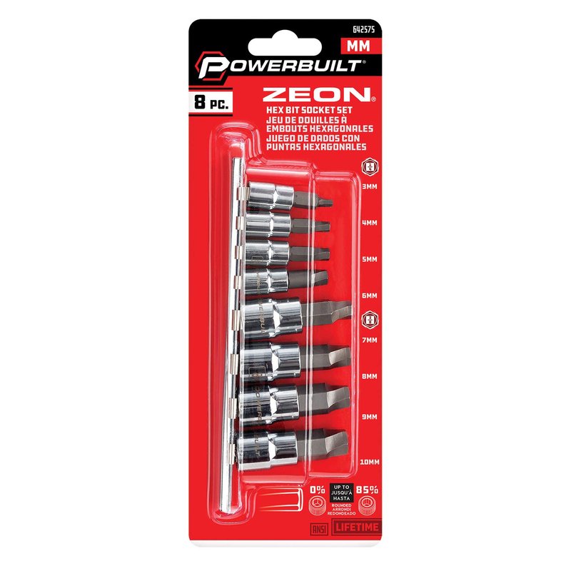 Powerbuilt 240094 8 Piece Zeon Metric Hex Bit Socket Set - with use for Damaged Fasteners, Standard, Rusted, Rounded Bolts, Size from 3mm to 10mm