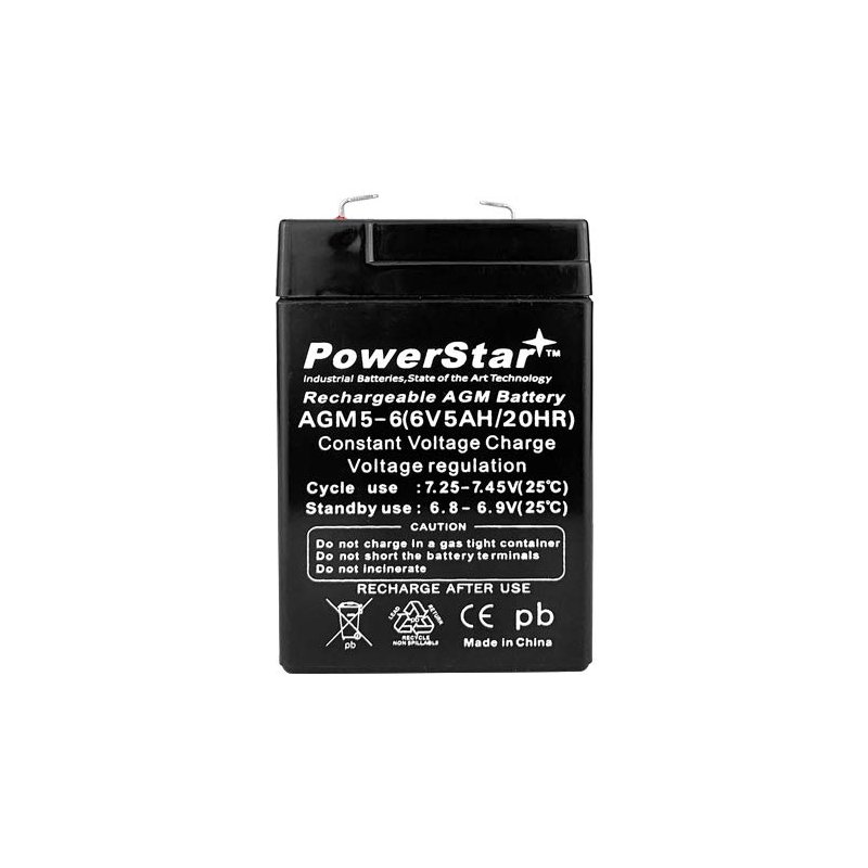 PowerStar 6V 5ah Battery is perfect for many applications including CA640. Long Cycle Life and storage capbilties. The sealed AGM (absorbed glass mat) technology is an advanced, maintenance-free technology. Powerstar 6 Volt 5Ah Replacement Sealed Lead Acid Battery. PowerStar Brand Batteries 2 year warranty 100% compatible Advanced AGM Technology Sealed – Maintenance Free PowerStar Brand batteries are offered Exclusively by BatteryJack Inc.