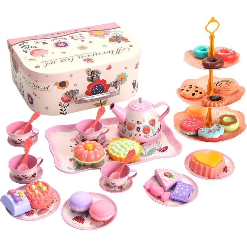 - 🫖 〈Deluxe Tea Set〉 : This comprehensive set features a delightful array of desserts, cookies, snacks, teapot, cups, and more, allowing children to host their very own regal tea gatherings fit for royalty.