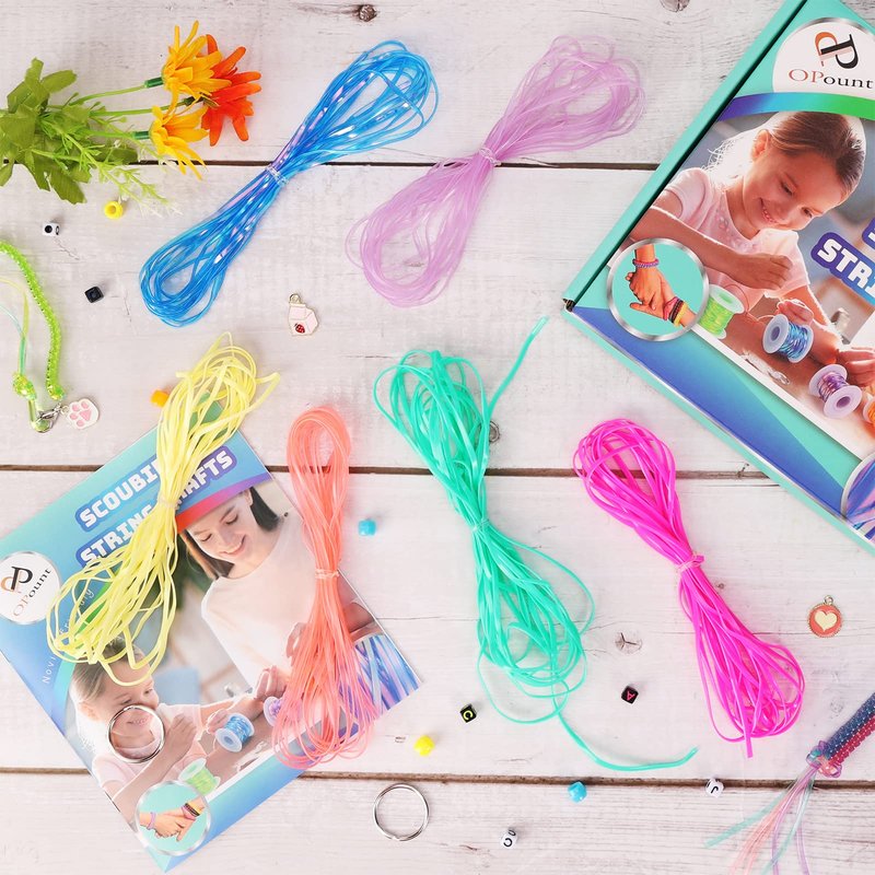 • 4 STYLES GIMP STRING: The lanyard string kit for bracelets has four different styles(glitter, laser, glow, normal), is made of high-quality PVC material, 3m / 9.8ft per roll. Each style is attractive, a large number of quantities and styles can be chosen to DIY on rainy days, overnight, holiday events, summer camps, etc