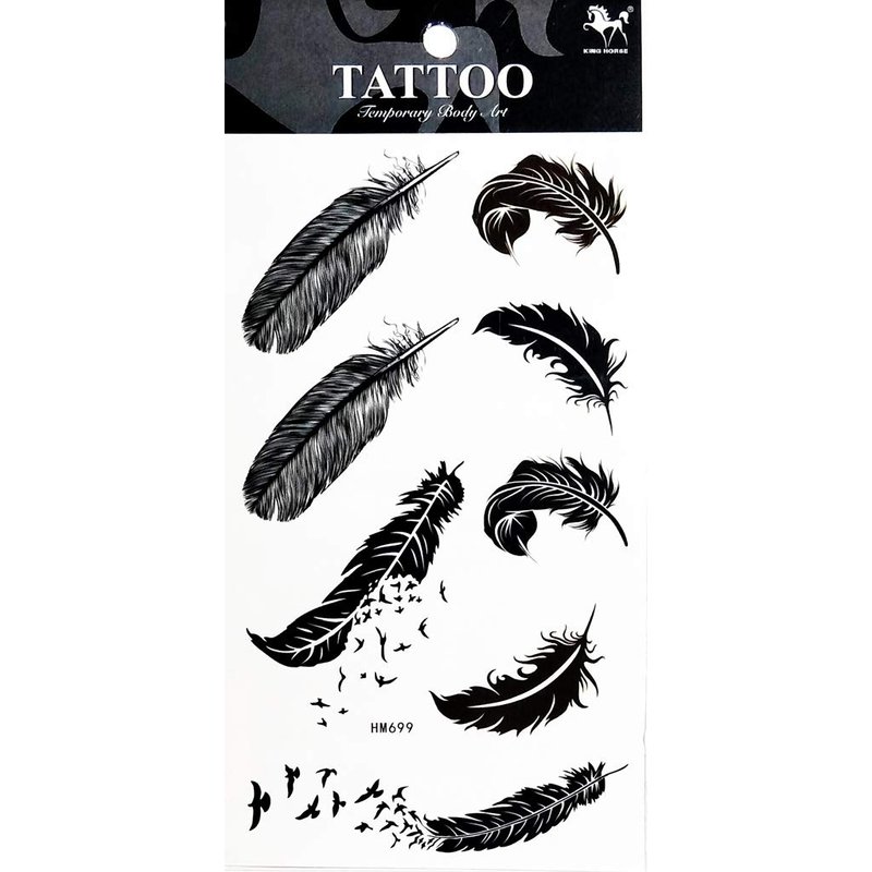 PP TATTOO 1 Sheet Black Bird Feather Animal Waterproof Temporary Tattoo Festival Flash Fake Tattoo Body Art Stickers