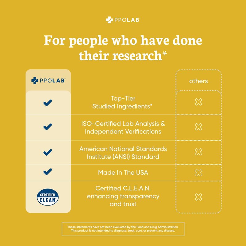 - Our Story - Est. 2020, PPO Lab began with a vision of creating clean wellness supplements formulated with ridiculously good ingredients inspired by nature and backed by science. Woman-owned and headquartered out of Sonoma, CA, we are building a future of health conscious individuals inspired to own their health and happiness. Made in the USA.*