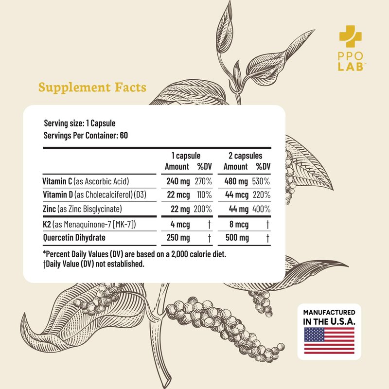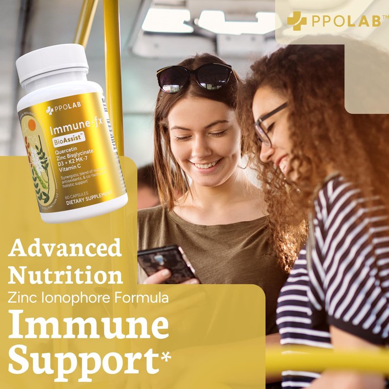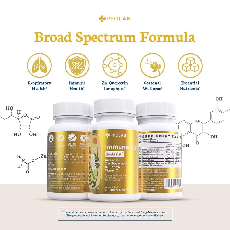 PPO Lab BioAssist® Immune-fx, Immune Support Supplement, Pulmonary Lung Supplement, Clean Certified® Quercetin with Vitamin C, Zinc AAC, K2 D3 Vitamin, Non-GMO, Lung Support 60 Vegan Capsules