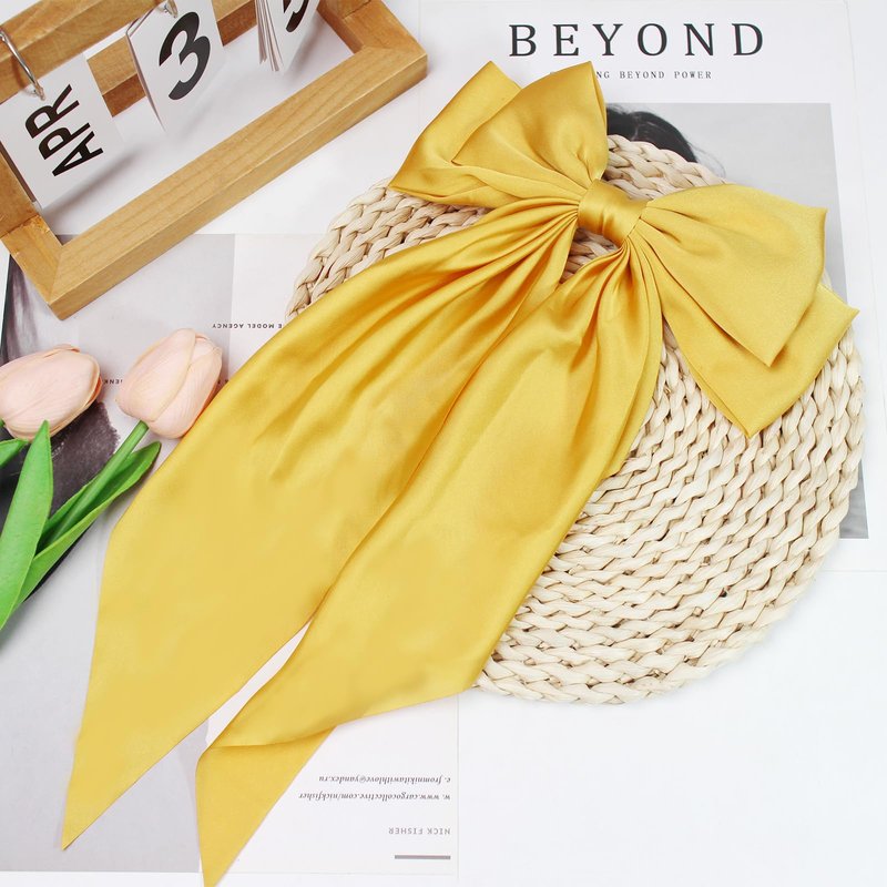 PQZKLDP 2PCS Silky Satin Hair Bows Big Versatile Hair Bows Cute Clips for Girls & Women Yellow Hair Bow Ribbons Oversized Long Tail Metal Clips Bowknot Aesthetic Hair Accessories (PD 213)