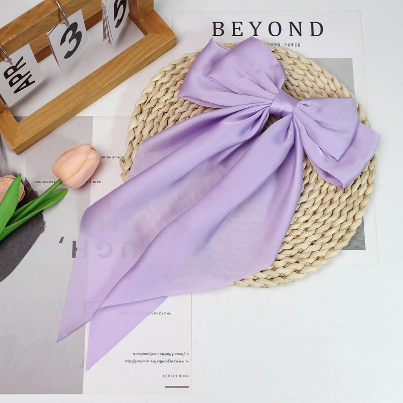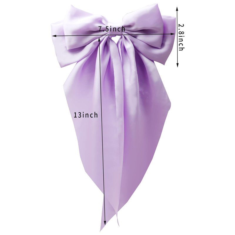 PQZKLDP 2PCS Silky Satin Hair Bows Big Versatile Hair Bows Cute Clips for Women Purple Hair Bow Ribbons Oversized Long Tail Metal Clips Bowknot Aesthetic Hair Accessories (PD 208)